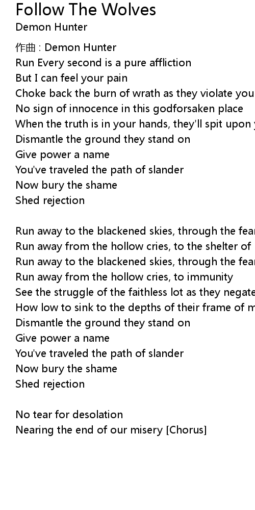 | Learn to follow the wolves [Chorus] | |