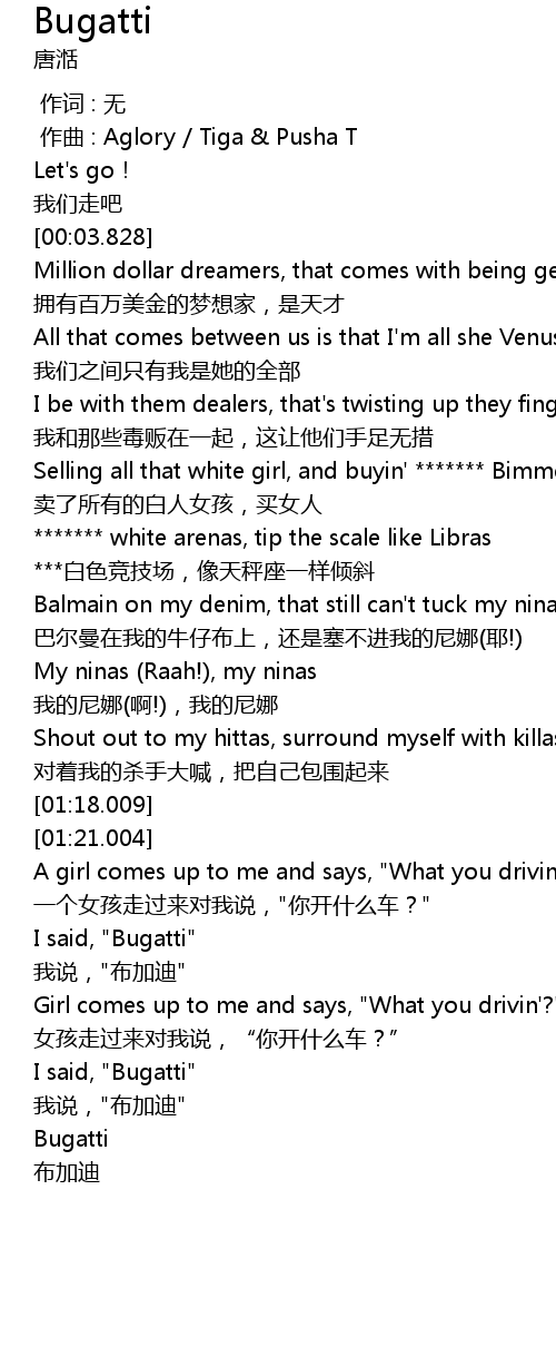 | [00:55.332] | Selling all that white girl, and buyin' ******* Bimmers |