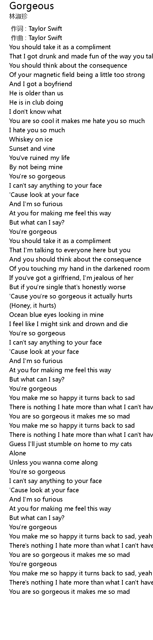 | [01:30.951] | 'Cause you're so gorgeous it actually hurts |