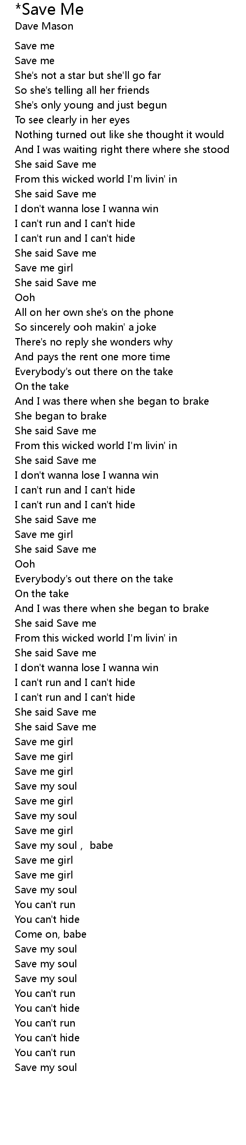 | [00:39.02] | She said Save me |