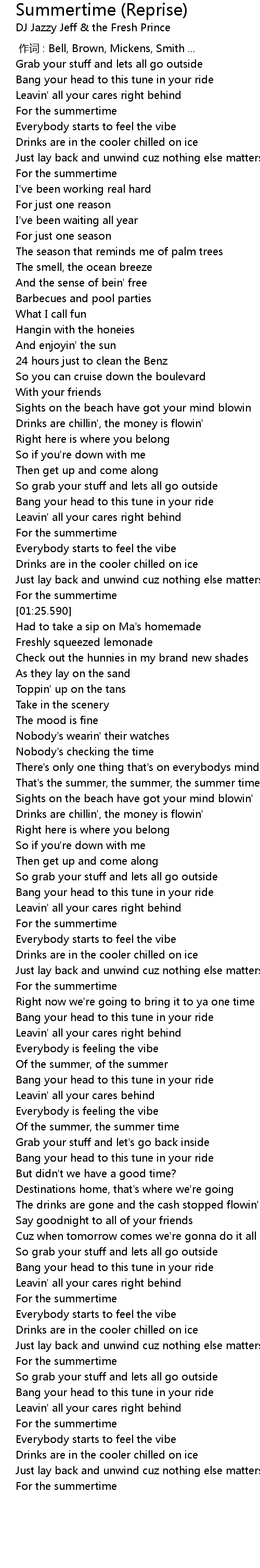| [01:46.450] | That's the summer, the summer, the summer time |
