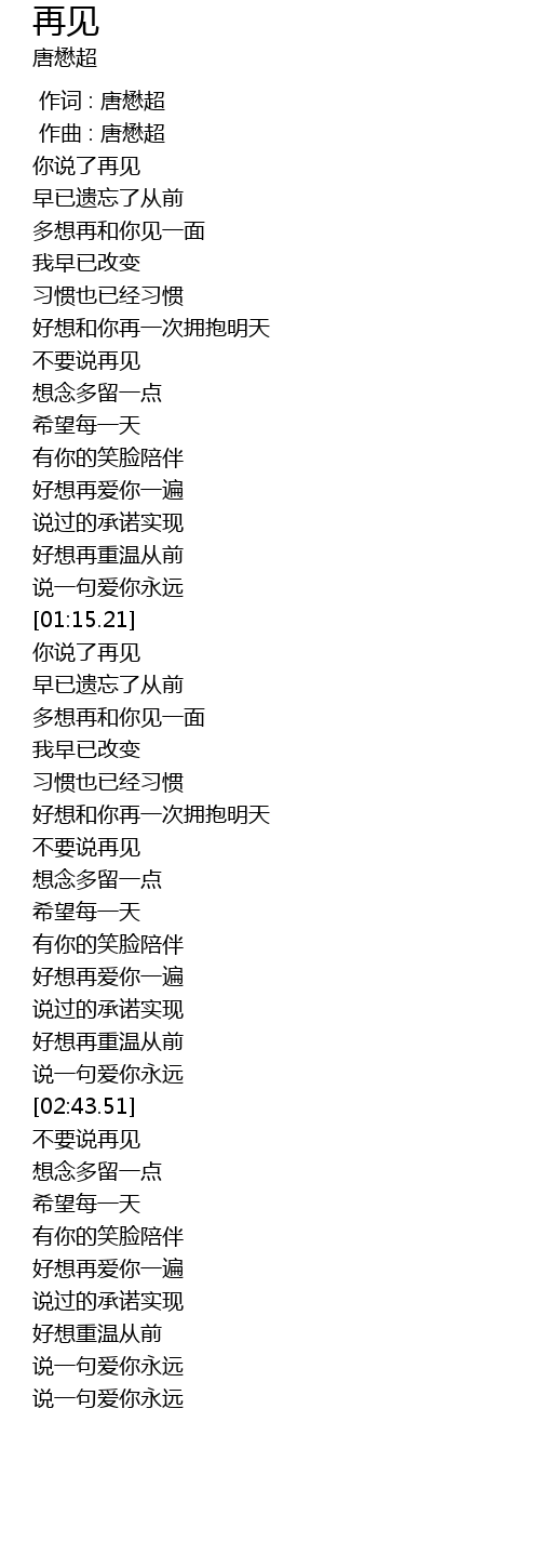 | [02:58.76] | bú yào shuō zài jiàn |