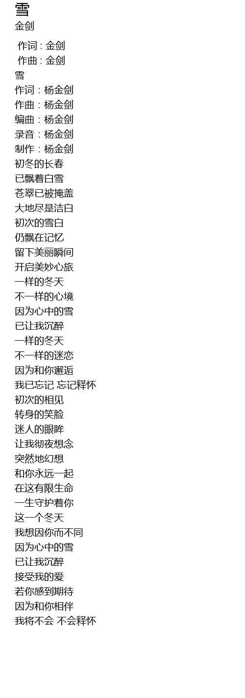 | [00:06.999] | 编曲:杨金剑 |