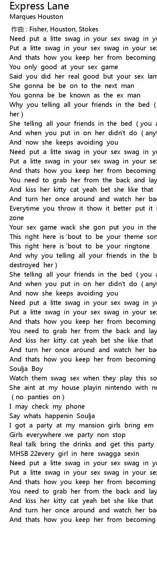 | [00:59.64] | Need put a litte swag in your sex swag in your sex |