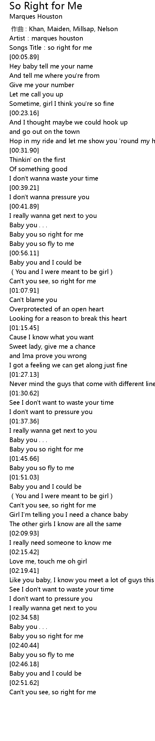 | [00:02.33] | Songs Title:so right for me |