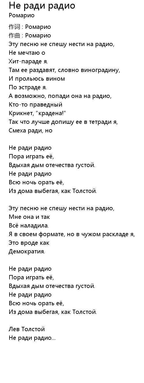 Не ради радио... |