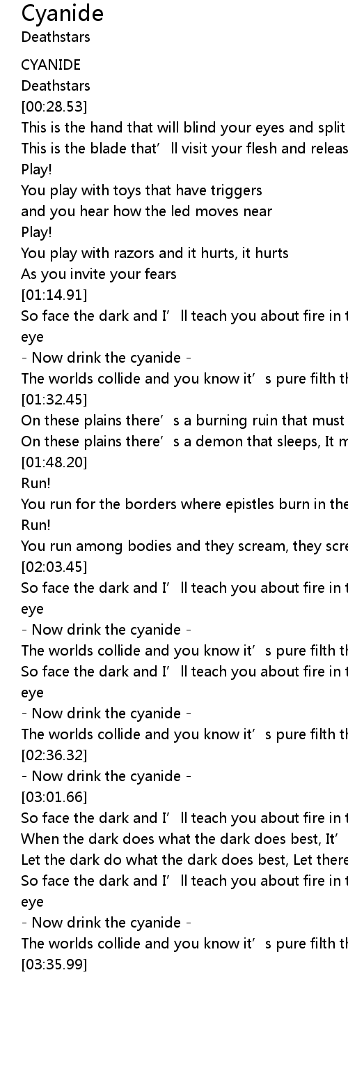 | [03:16.36] | Let the dark do what the dark does best, Let there be darkness! |