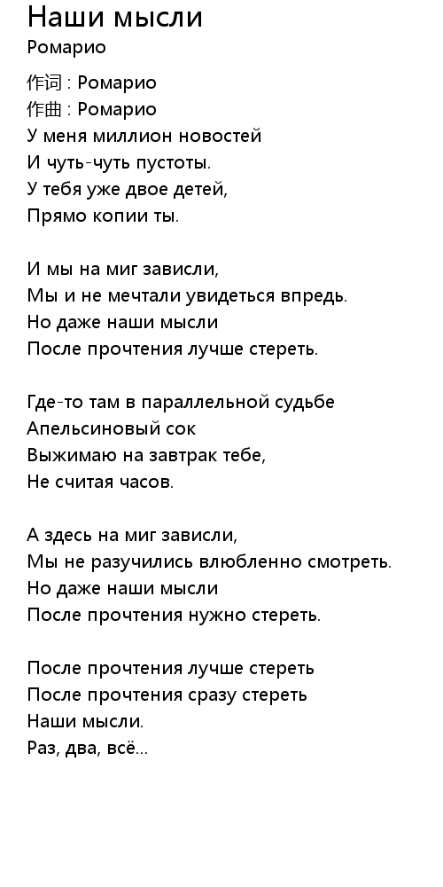Наши мысли 歌词