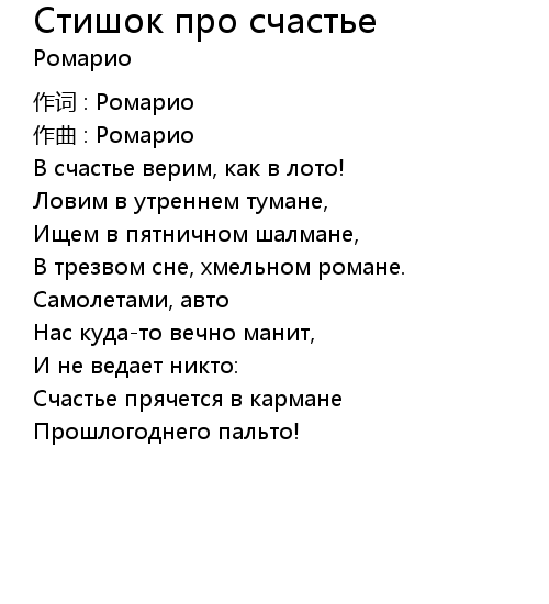 | 歌曲 | Стишок про счастье |