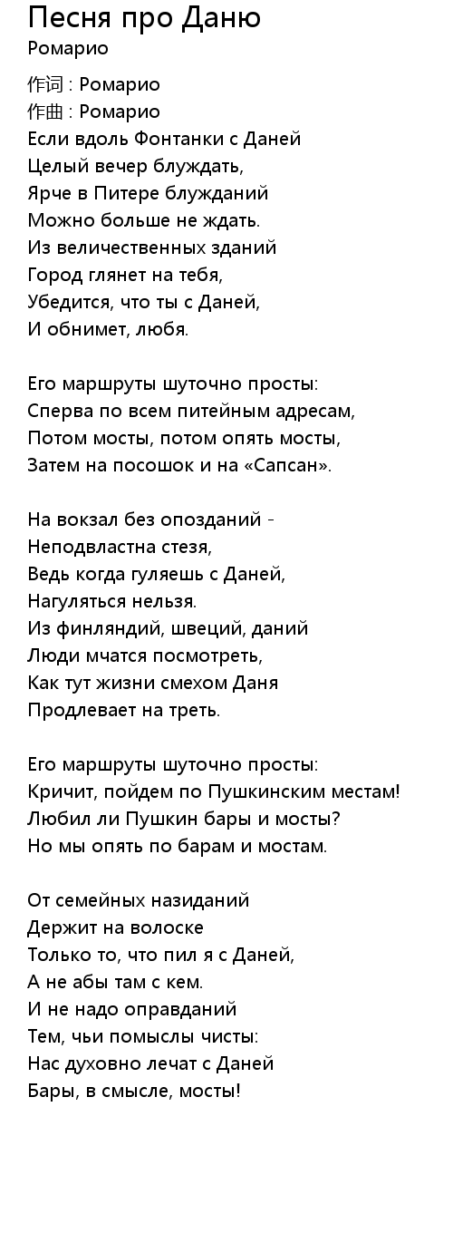 Песня про Даню 歌词