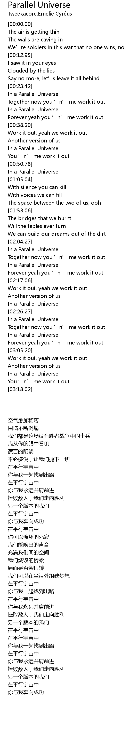| [01:02.03] | 在平行宇宙中 |