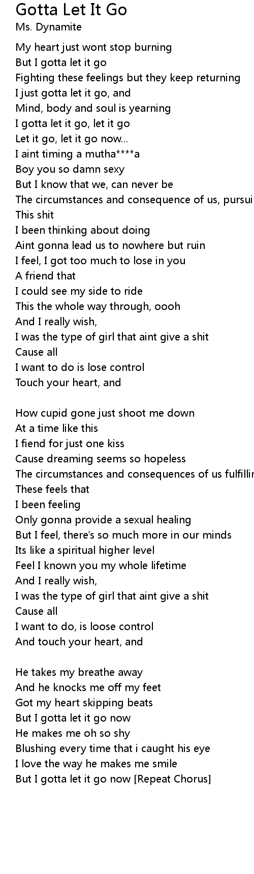 But I gotta let it go now [Repeat Chorus] |