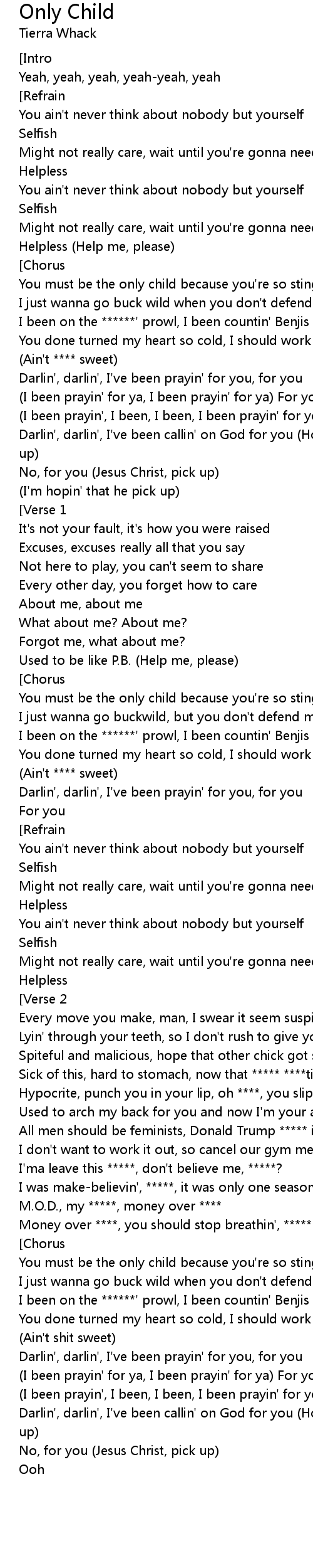 You ain't never think about nobody but yourself |