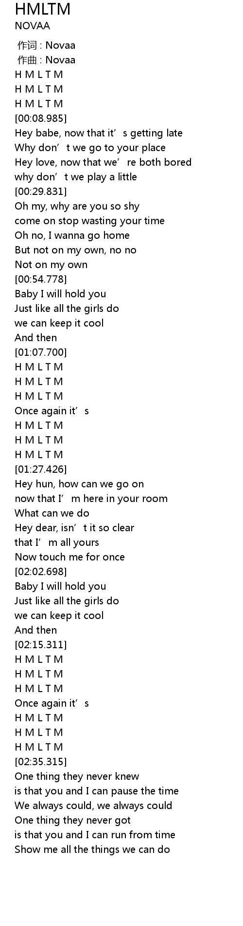 | [02:29.413] | H M L T M |