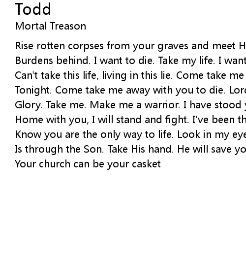 Burdens behind. I want to die. Take my life. I want to die to be alive. I |