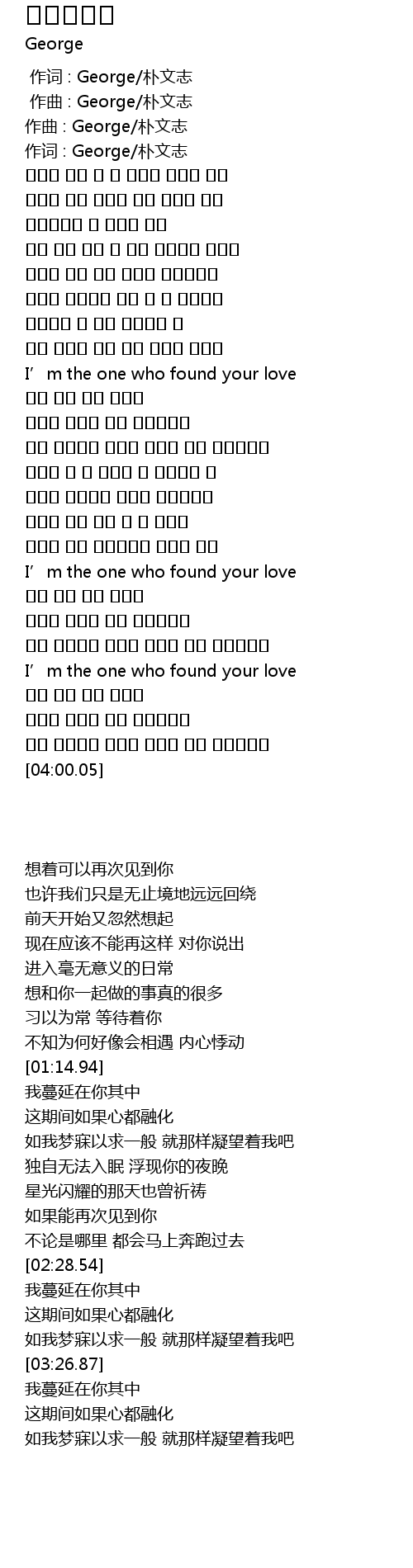| [00:00.95] | 作曲 : George/朴文志 |