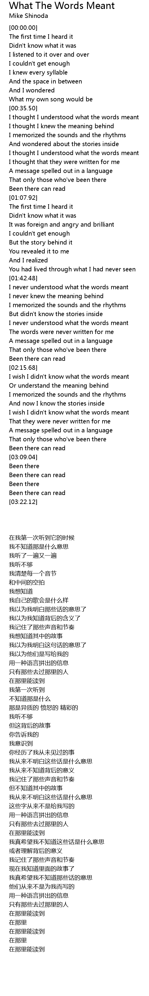 I never understood what the words meant |
