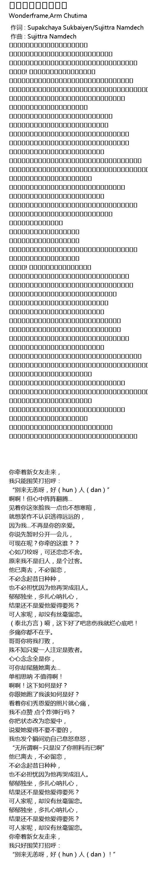 | [01:15.01] | (泰北方言)嗬,这下好了吧悲伤我就烂心底吧! |