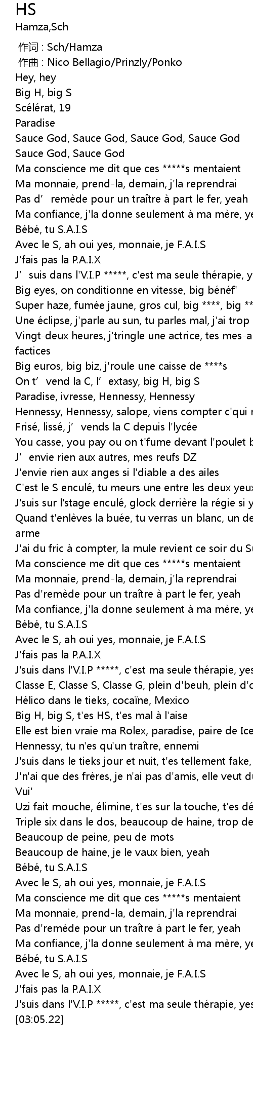 | [02:09.33] | Big H, big S, t'es HS, t'es mal à l'aise |