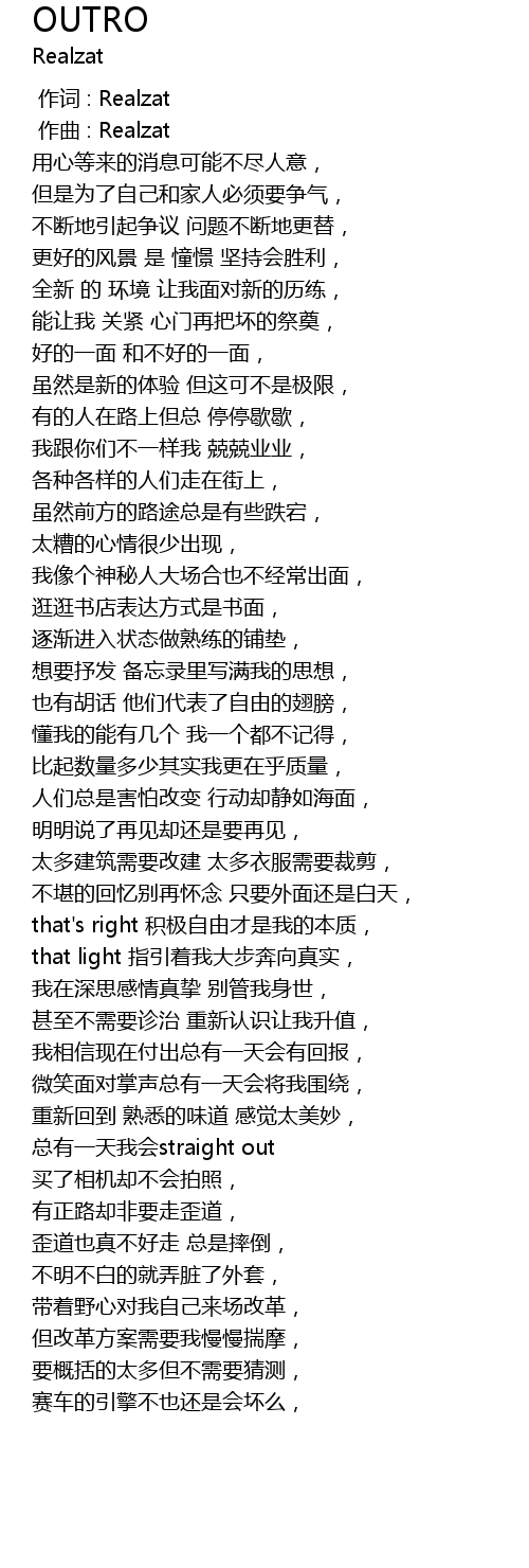 | [00:00.000] | 作词 : Realzat |