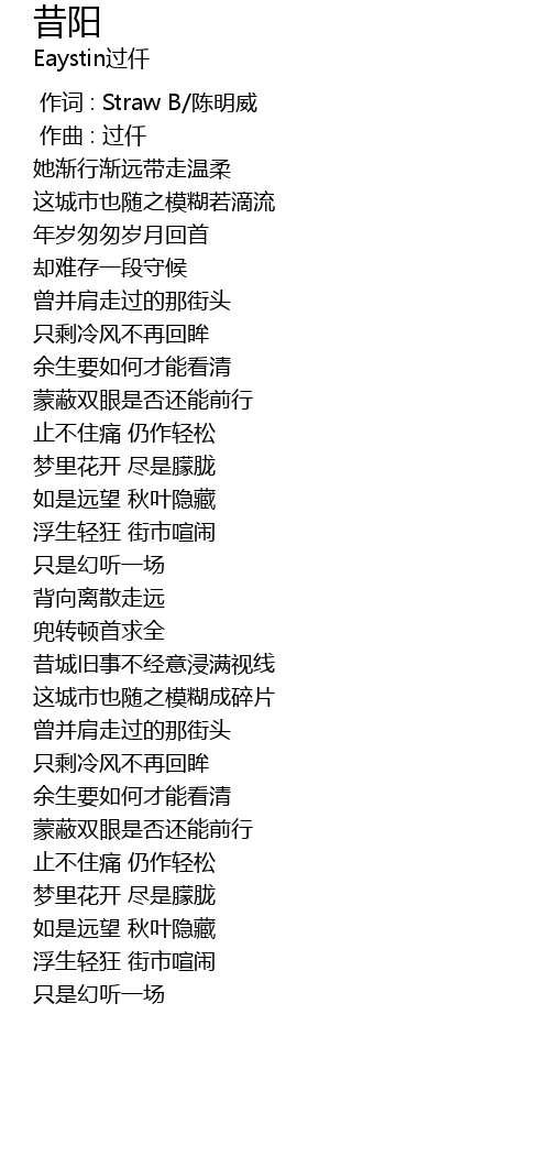 | [01:40.902] | 昔城旧事不经意浸满视线 |