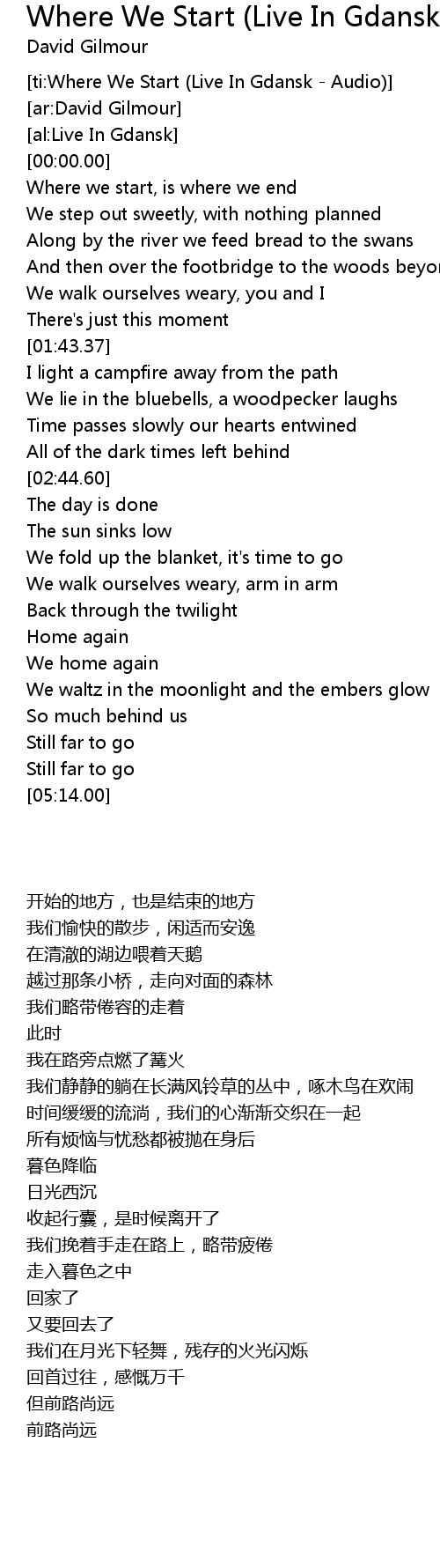 [ti:Where We Start (Live In Gdansk - Audio)] |