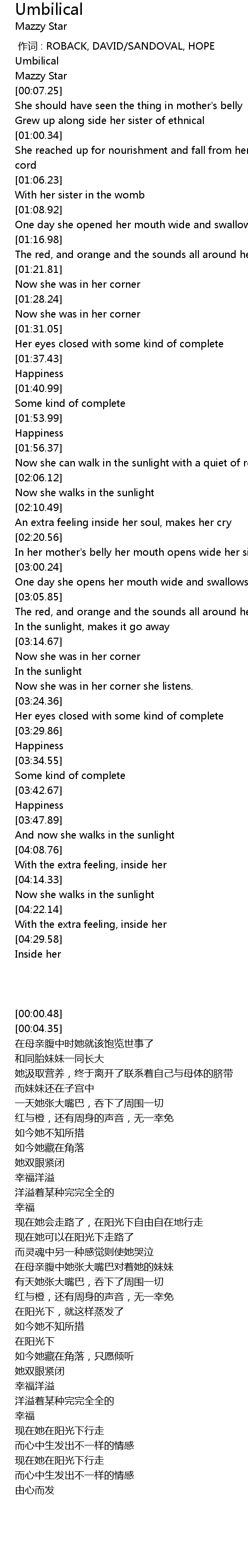 | [01:01.34] | She reached up for nourishment and fall from her mother's umbilical cord |