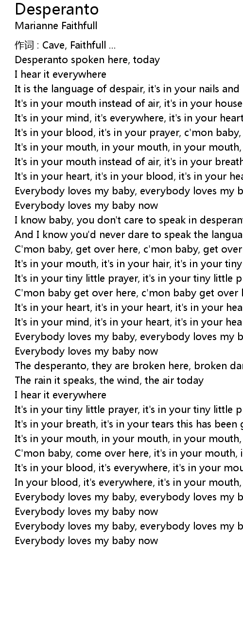 | The desperanto, they are broken here, broken darlin' by despair | |