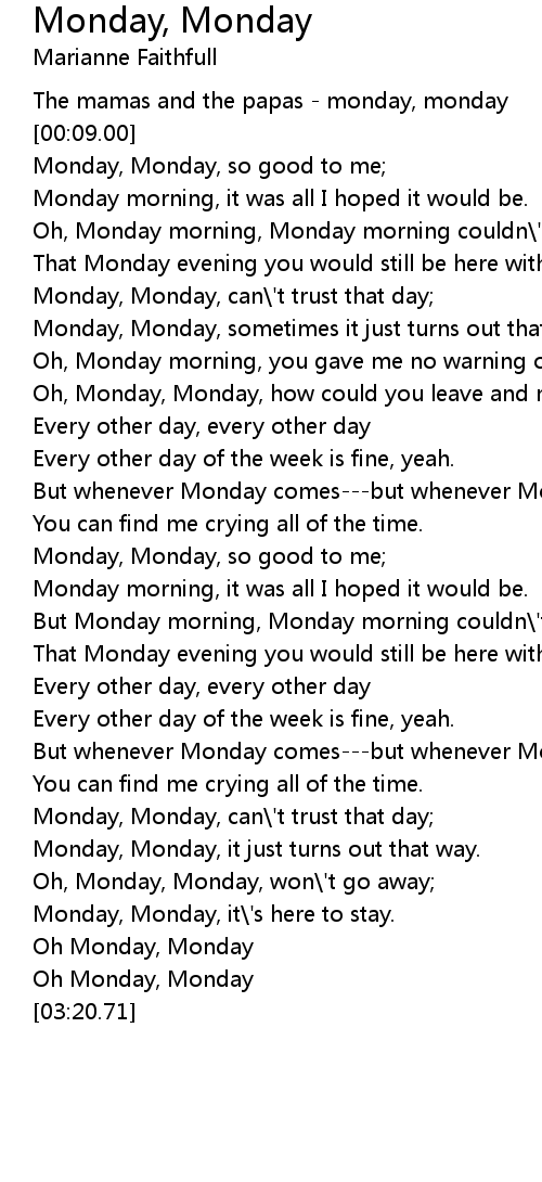 [03:03.81] Monday, Monday, it\'s here to stay.