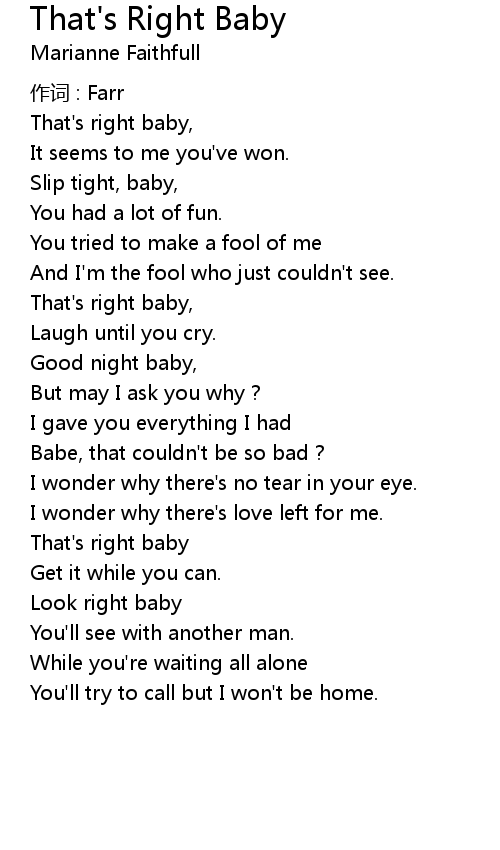 | That' s right baby | |