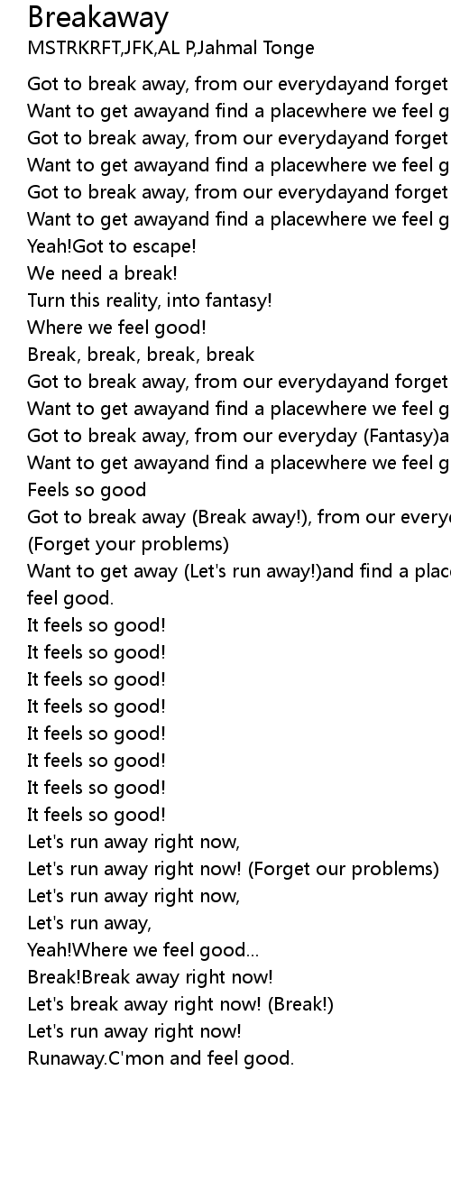 Got to break away (Break away!), from our everydayand forget our problems. (Forget your problems) |