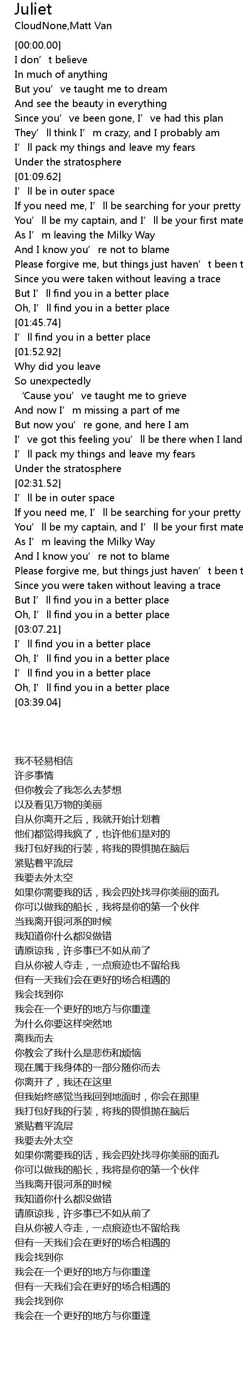 | [03:19.71] | Oh, I' ll find you in a better place |