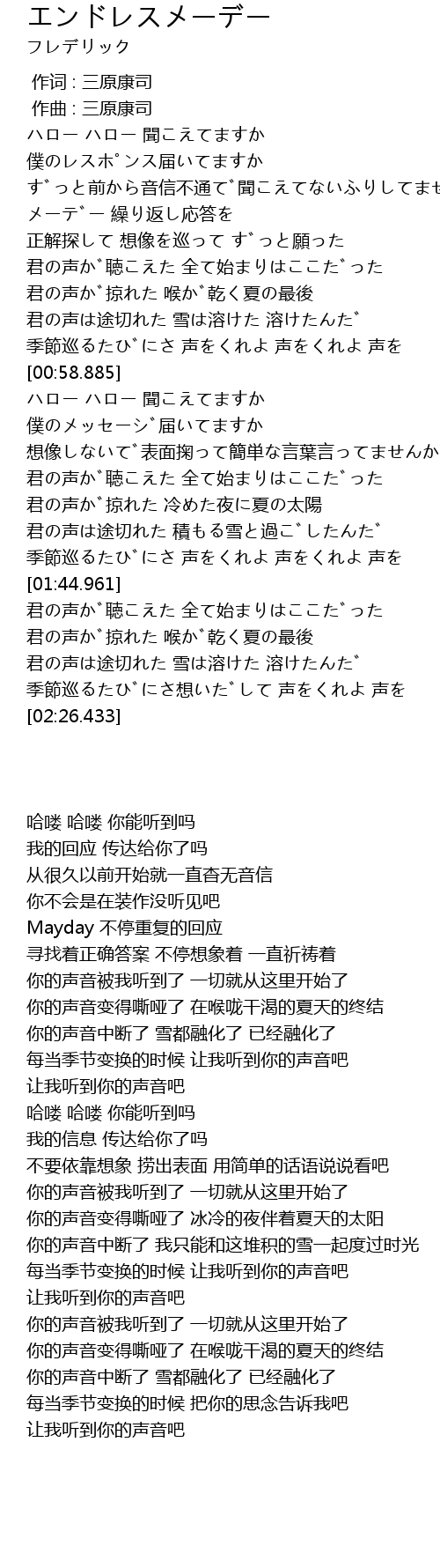| [00:18.584] | 从很久以前开始就一直杳无音信 你不会是在装作没听见吧 |