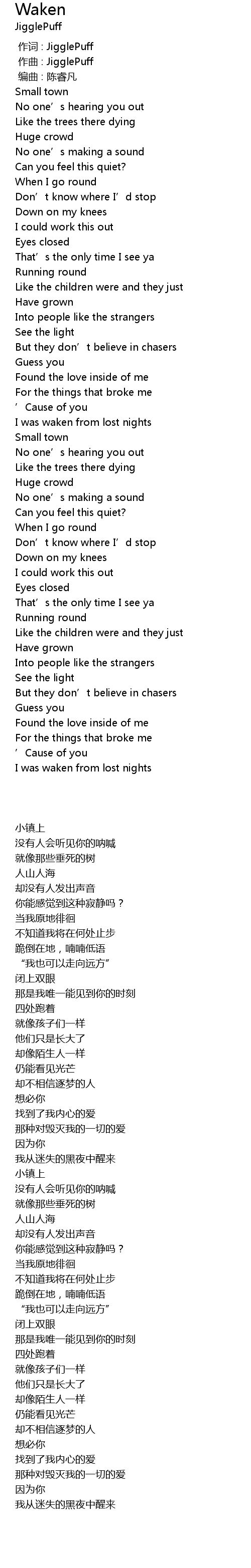 | [00:00.000] | 作词 : JigglePuff |
