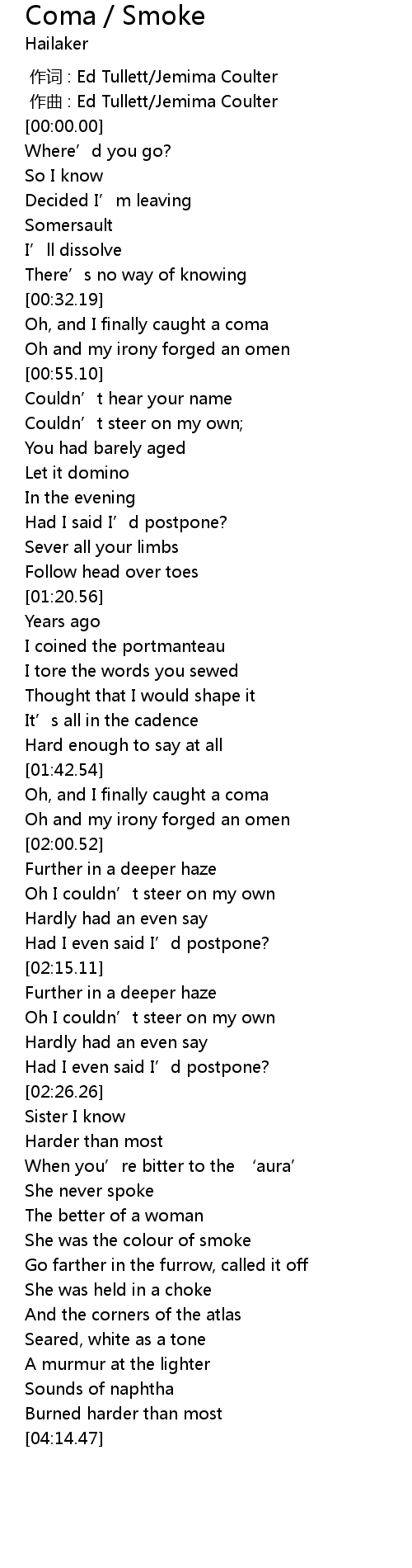 | [03:36.93] | She was the colour of smoke |