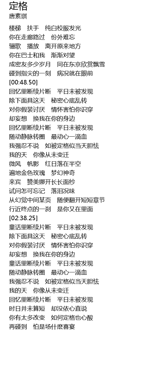 | [00:50.86] | huí yì lǐ duàn xù piàn duàn píng rì wèi bèi fā xiàn |