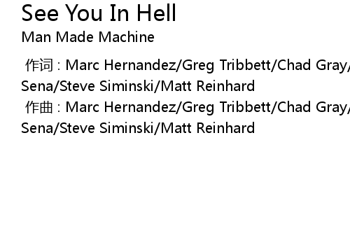 | [00:00.000] | 作曲 : Marc Hernandez/Greg Tribbett/Chad Gray/Joe Cotela/Justyn Sena/Steve Siminski/Matt Reinhard |