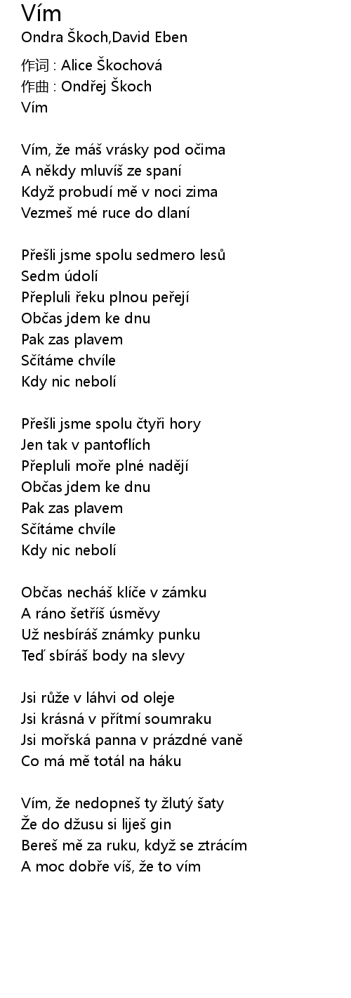 | 歌曲 | Vím |