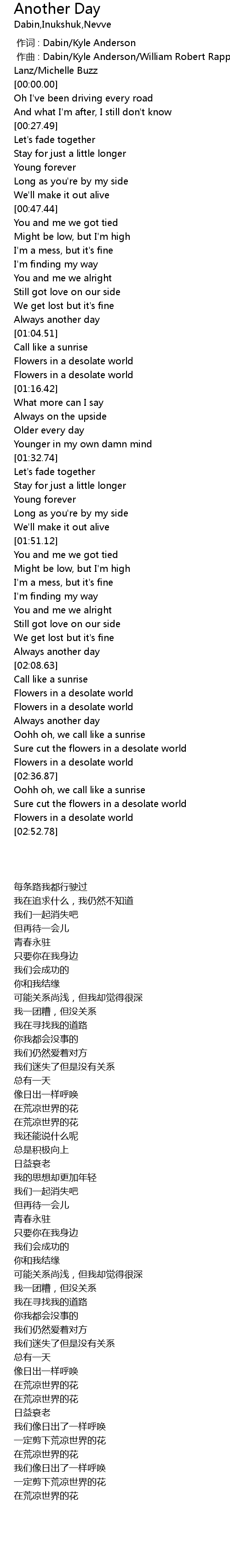 | [00:00.000] | zuò cí : Dabin Kyle Anderson |