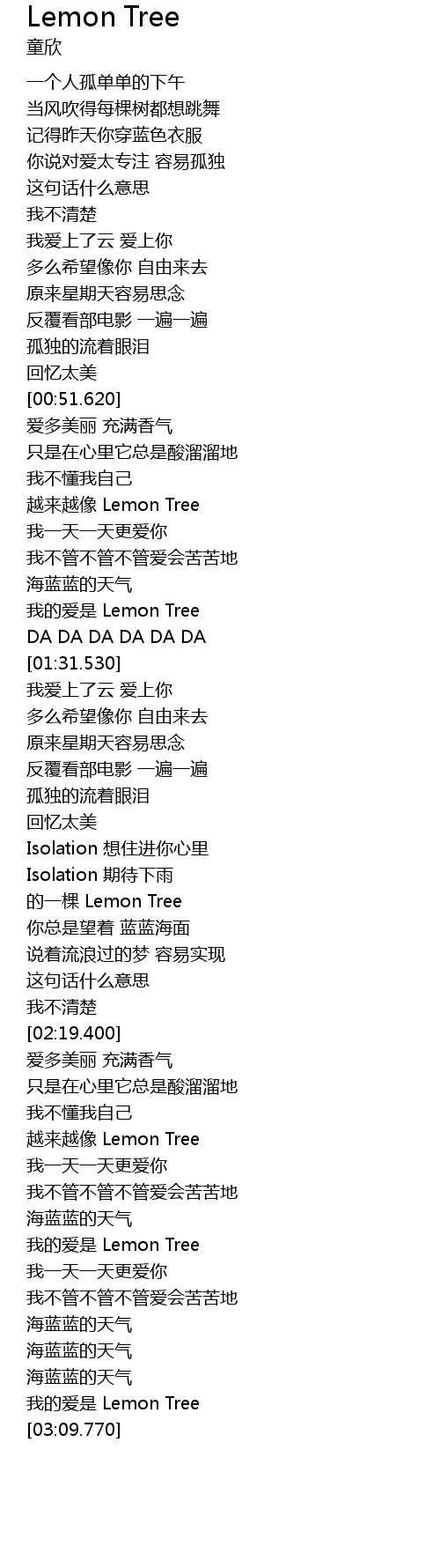 | [03:04.150] | 我的爱是 Lemon Tree |