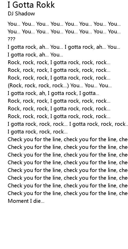 I gotta rock, ah... You... I gotta rock, ah... You... |
