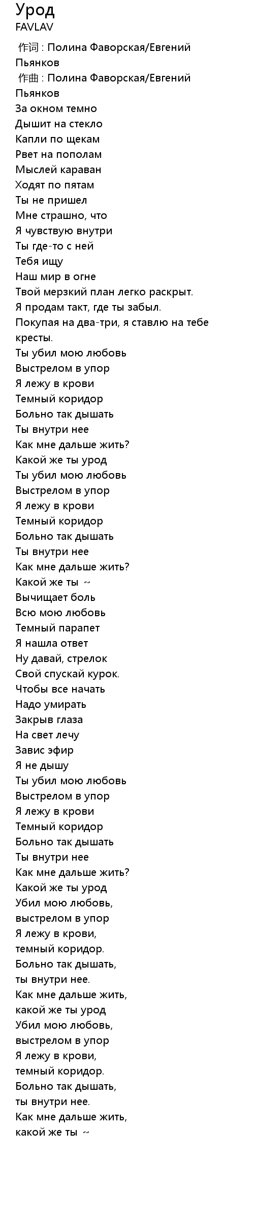 [00:01.000] 作曲 : Полина Фаворская/Евгений Пьянков