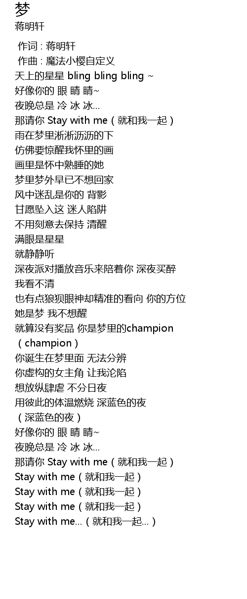 | [01:44.817] | Stay with me jiù hé wǒ yì qǐ |