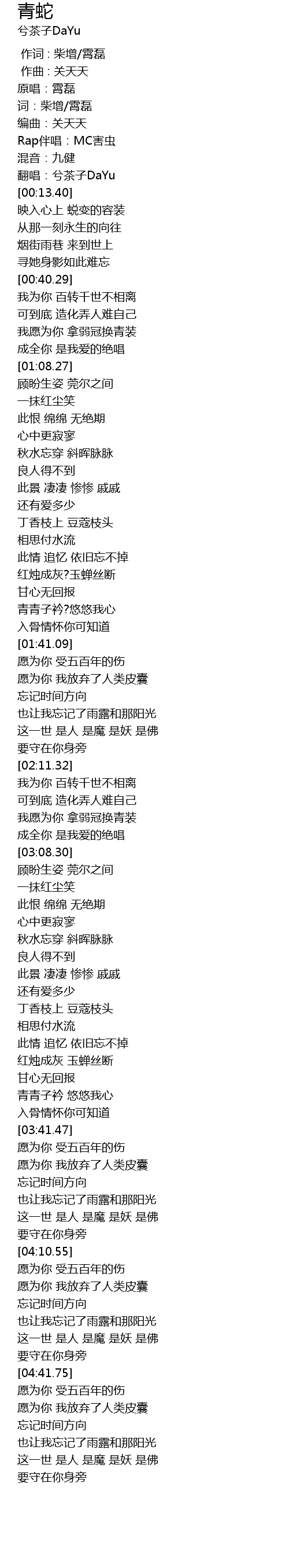 | [04:13.32] | 愿为你 受五百年的伤 |