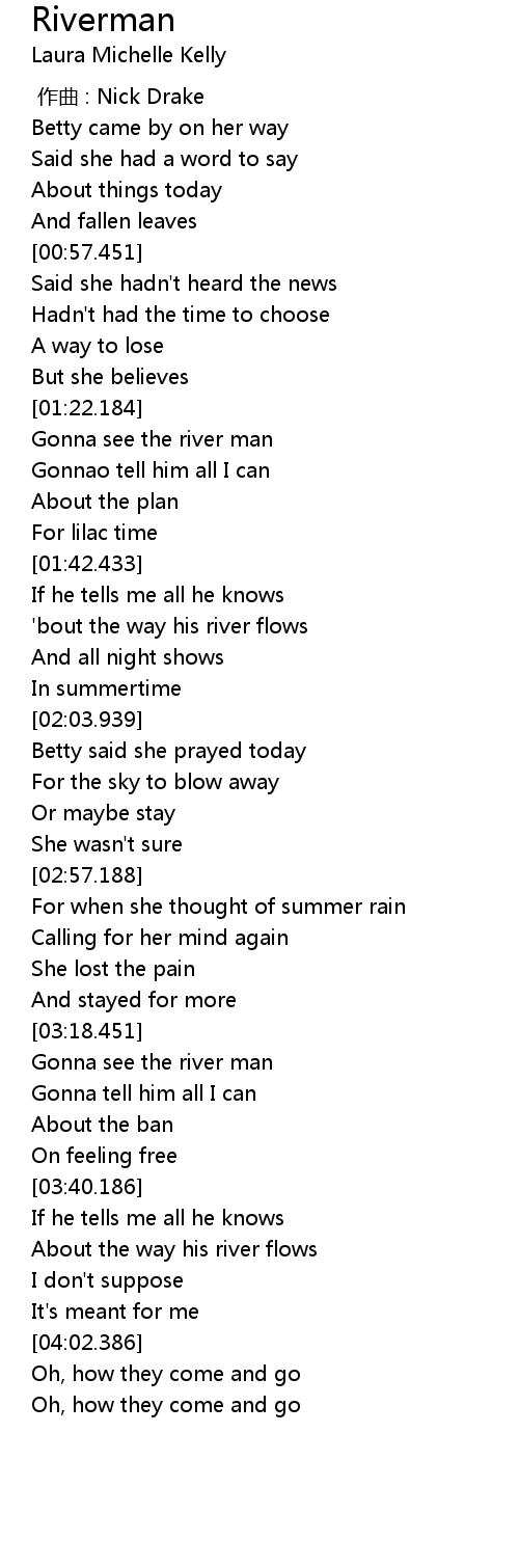 | [00:00.000] | zuò qǔ : Nick Drake |