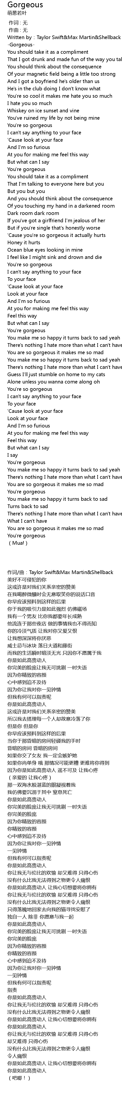 | [00:01.631] | 作词/曲:Taylor Swift&Max Martin&Shellback |
