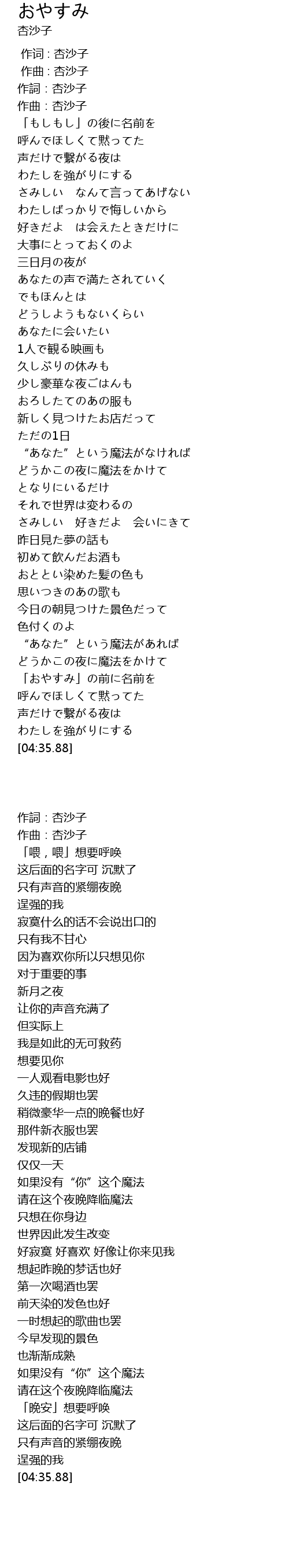 作詞:杏沙子 |