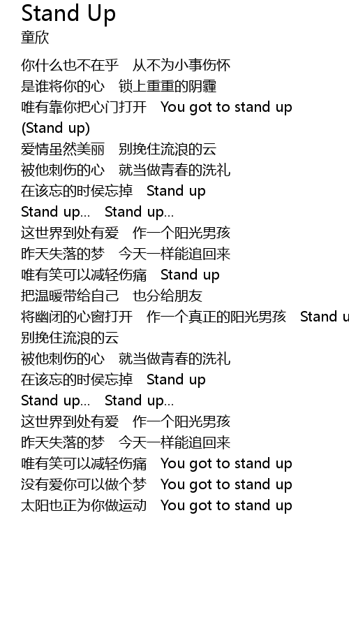 | 唯有靠你把心门打开 You got to stand up | |