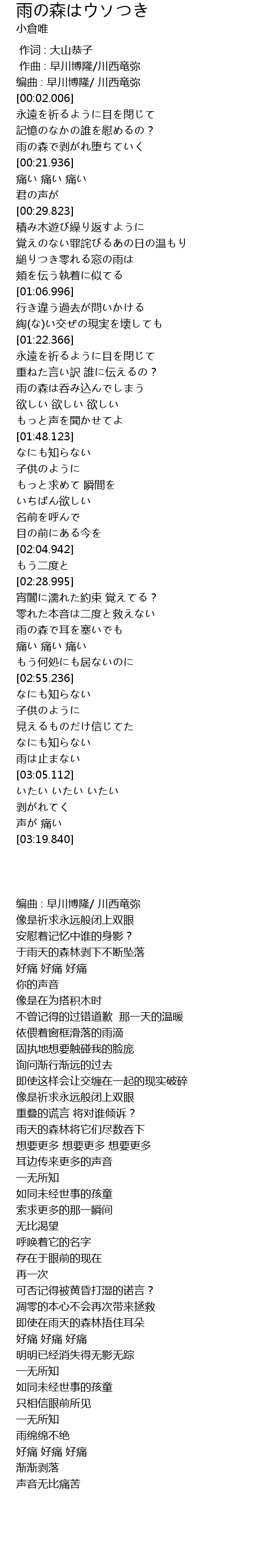 | [00:15.511] | 雨の森で剥がれ堕ちていく |