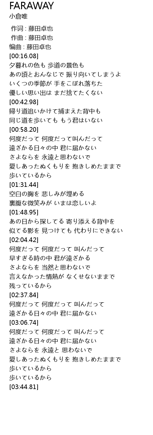 | [03:00.42] | 遠ざかる日々の中 君に届かない |